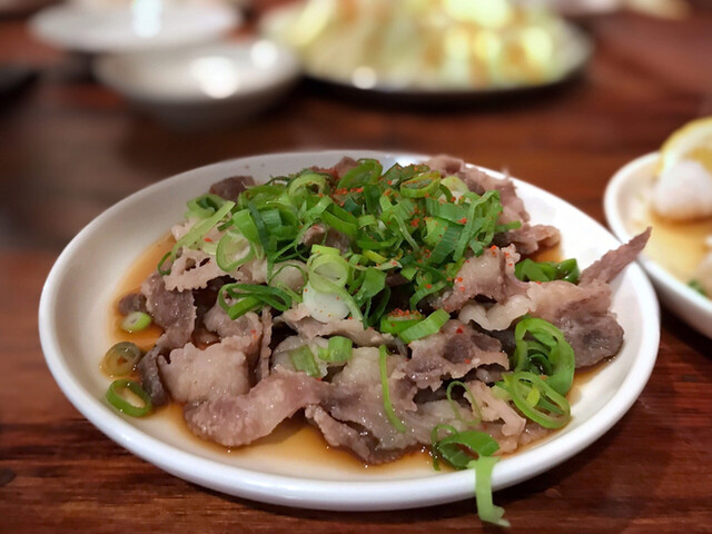 どこのスジかは、よくわからないですが、塩ごま油で和えてあります。