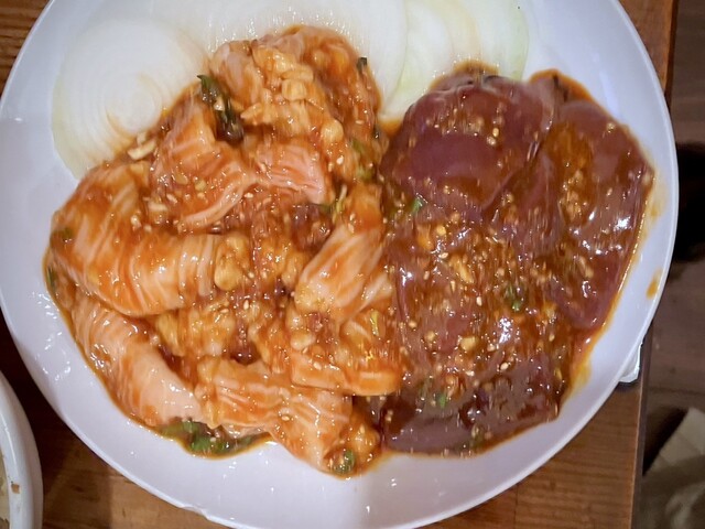 ハラミと違って、やや甘めの味噌ぽい味付け。