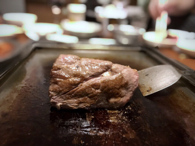 鉄板部屋は肉の焼き方がちょっと難しいですが、上手く焼けると、めちゃくちゃにうまいお肉にありつけます。
