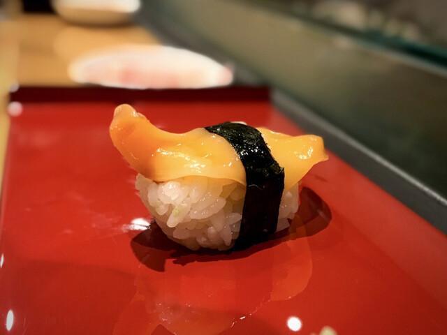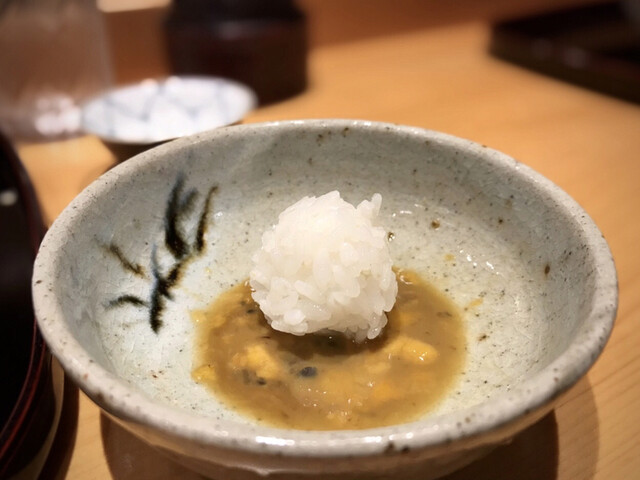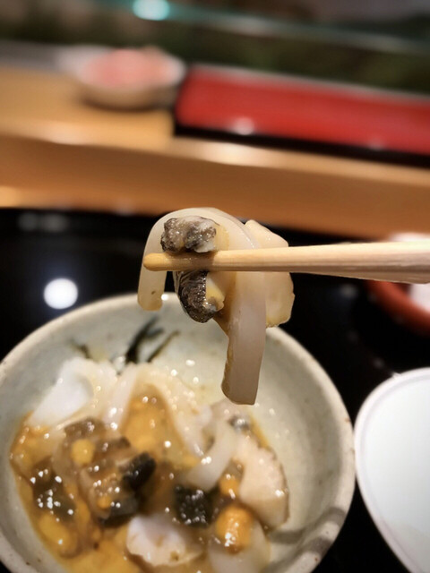 ゴリっとした鮑の身と雲丹と鮑の肝の磯の風味とコクとほろ苦さが絶妙すぎる組み合わせ。