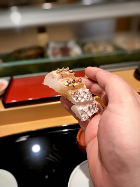 身の厚み、包丁の入れ具合の秀逸で口中でとろけるながら、シャリと一体となる。