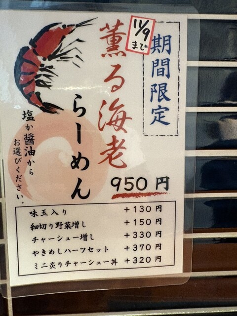 商品名通り海老の薫りからやってくる一杯スープから頂くとベースの鶏と魚介に海老の薫りが合わさり一層旨さを引き立てる海老ウマウマなスープであっさりですが抜群の旨さを感じれます