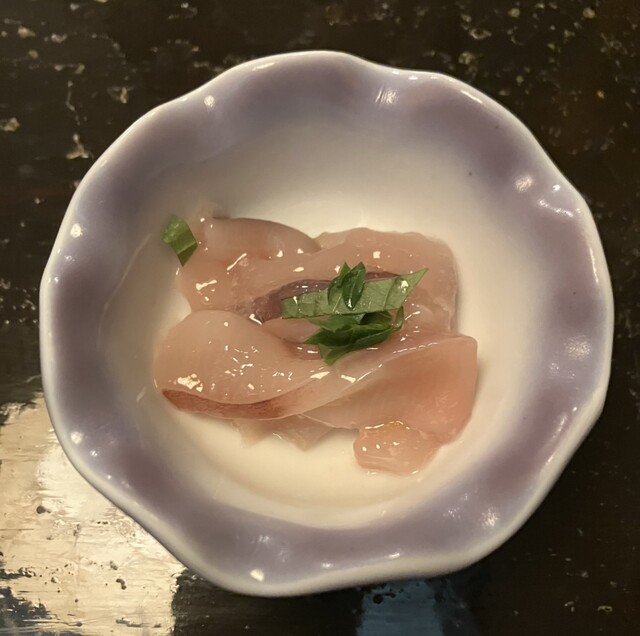 縞鯵 旬で最高のバランスの脂乗りと新鮮なコリコリ感!大き過ぎず小さ過ぎない程良い大きさの縞鯵を仕入れられてるから、本当に美味しい!