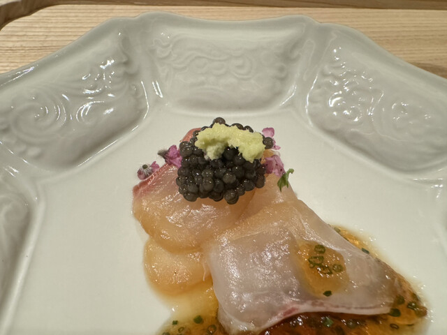 ・水蛸のお造り(虎白特製ジュレ、キャビアと海鼠のくちこ)