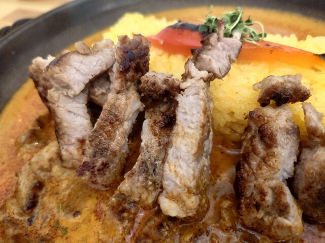 適度な歯応えの豚ステーキ肉とターメリックライスに、スパイスの効いたココナッツミルクスープのハーモニー。