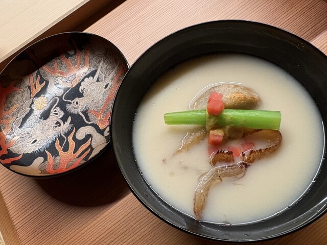 白味噌 フカヒレ 里芋を揚げたもの 辛子