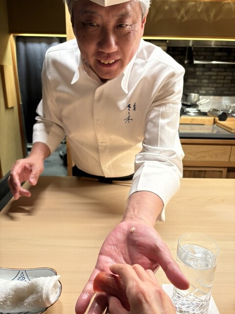 握り マグロ サワラ 大将が握ってくれたものを手渡し
