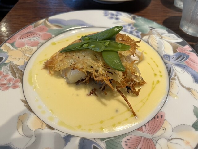 メインの牛肉ワイン煮込が柔らかく魚も上にジャガイモフリットが乗っていて食感も良く美味しく頂きました(メインは妻と二人でシェア)