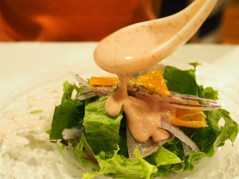 どのお皿も季節感いっぱいで、地元産の旬の食材がふんだんに使われています。ドレッシングやソースまで、自家製・手作りなんですよ♪