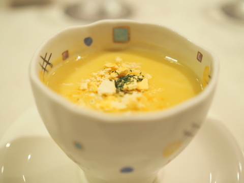 他にも、洋風茶碗蒸し・サラダ・オリジナル杏仁豆腐とつづきます。お味噌汁には、むかごが入っていました。