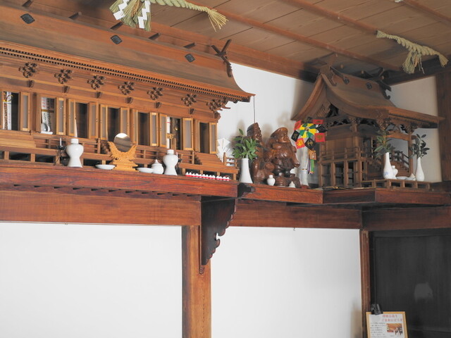 この神棚は、このお屋敷を建てた棟梁が、宮大工冥利につきる仕事をさせてもらったお礼にと、丹精込めて造ったものだそう。
