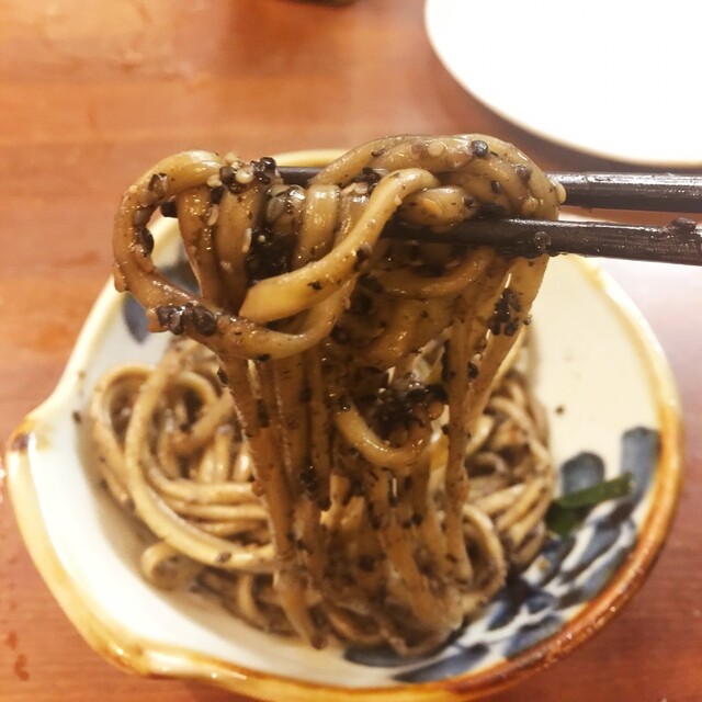 もつ鍋は特にトッピングなしで、生せんまいと〆の胡麻そばを必ずオーダーします。