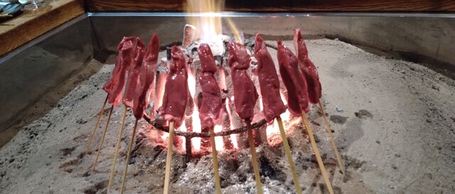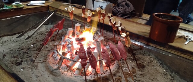 炭で焼くから味わえる風味と囲炉裏の火がもたらす