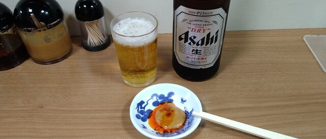 焼ける前に1本飲み干して、、、麦酒追加