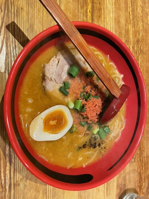 数年前に同僚に強く勧められて、新千歳空港の支店に行って スッカリハマってしまいました。東京にもありますが、やはり本店へ。すすきのからタクシーで少し行くとあります。夜中の11時過ぎですが、ズラリと行列。少ない店員さんで頑張っているのを見ると頭が下がります。コロナ前以来のエビラーメンに感激しつつ、この値段で採算取れるのかなと心配になります。夜中は割増とったらどうでしょうか。ご馳走様でした。