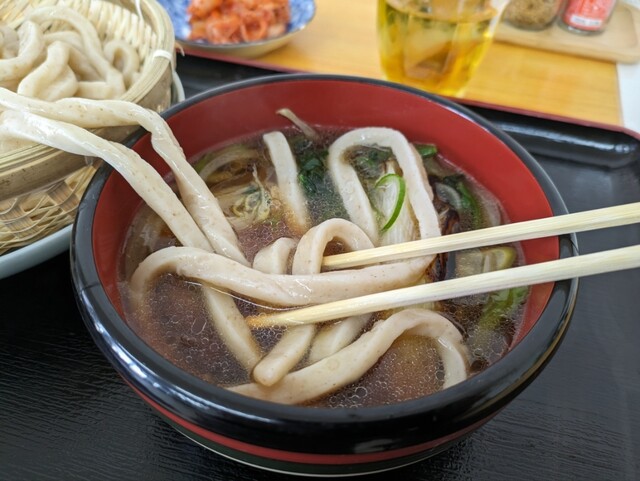 ずっ、ずるっ。何コレ、スゴい麺だな。ずるっ、ずるっ、ずるーーー。喉ごしがスゴい!