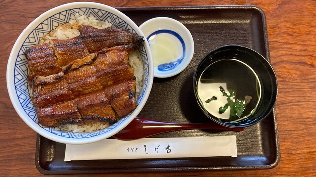開店直後にも拘らず、既に待ち客多数で30分程度の待ち時間予想。ウエィティングボードに名前と携帯番号を書き、車で待つ。ほぼ30分後にお店から呼出の電話が有り、案内された店奥の座敷席へ。折角なので鰻量1.25匹の「うなぎ丼/上」¥4,100円を注文し、待つ事15分程で配膳された丼/上は、同行者がオーダーした丼/並と比較しても鰻の量に変わりは無い様に感じられたが、何とご飯の中に鰻が隠れており納得した次第。