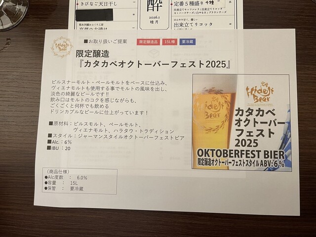 宮崎 ひでじビール(樽生) まずは宮崎の実力派クラフトビール「ひでじビール」で乾杯。 きめ細かいクリーミーな泡と、黄金色の輝き。口に含むと華やかな香りが広がり、移動の疲れが一気にリセットされます。スターターとして完璧。
