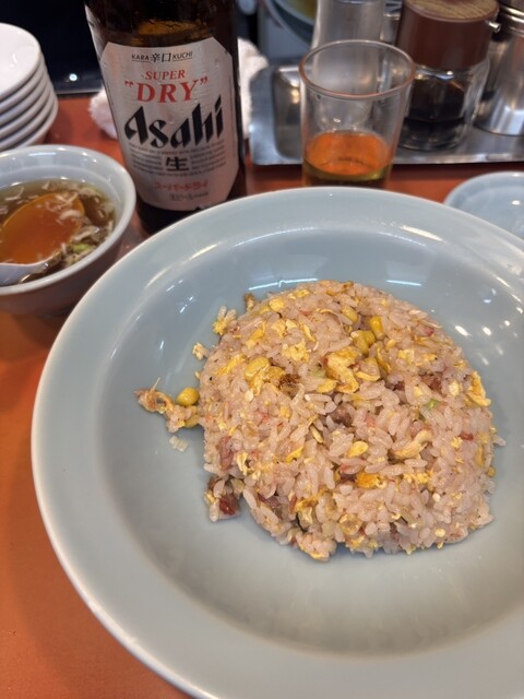 チャーハンはパラパラではなかったが、塩胡椒のバランス最高で瞬殺、大ぶりの餃子とビールを平らげフィニッシュ