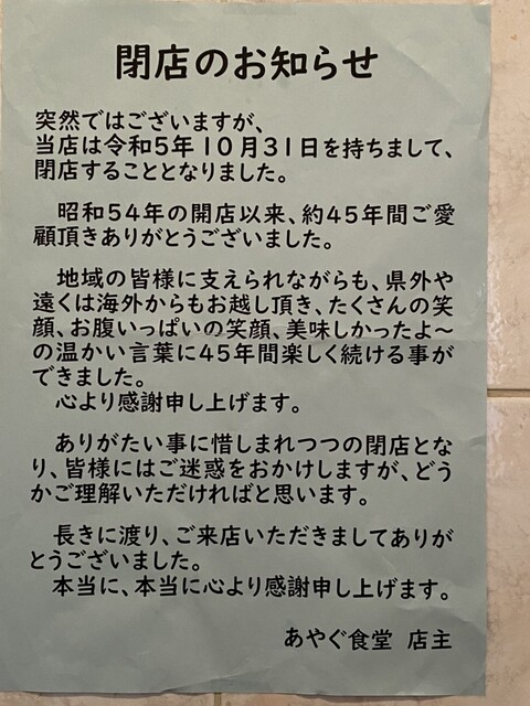 閉店あやぐ食堂首里、石嶺、儀保/沖縄料理、沖縄そば、食堂