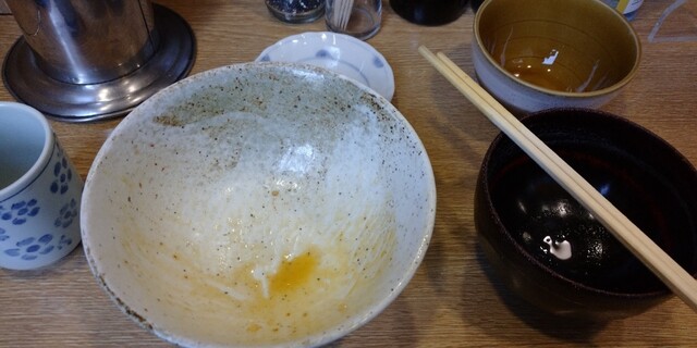 途中で「生卵」を入れて混ぜ混ぜして、箸休めにおしんこをつまみながら完食、完飲です。量も丁度良い量です。しかもあわせて¥630-とは!銀座のこの辺りでこの味、この量。CP高し!そして、お母さんの接客も良かったです。