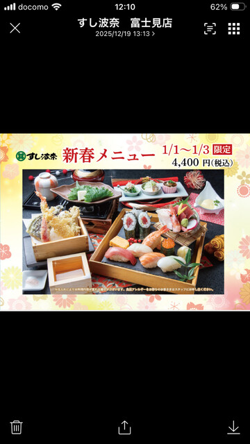 内容は特上寿司なのでネタが良いです。大トロ、ウニ、数の子、どれも身がしまっていて美味しかったです。