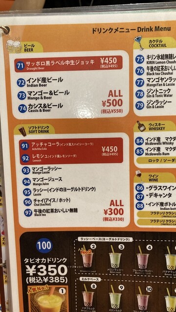 お得なランチドリンク100円
