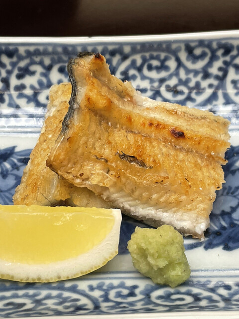 →これまた、香ばしく、周りがカリカリ、甘くて深い味わい、レモンを少し搾り山葵をたっぷりと付けていただきます