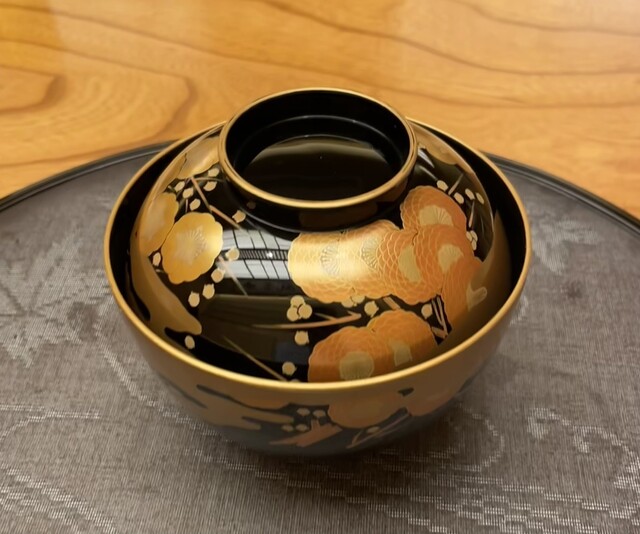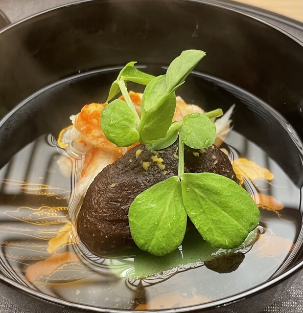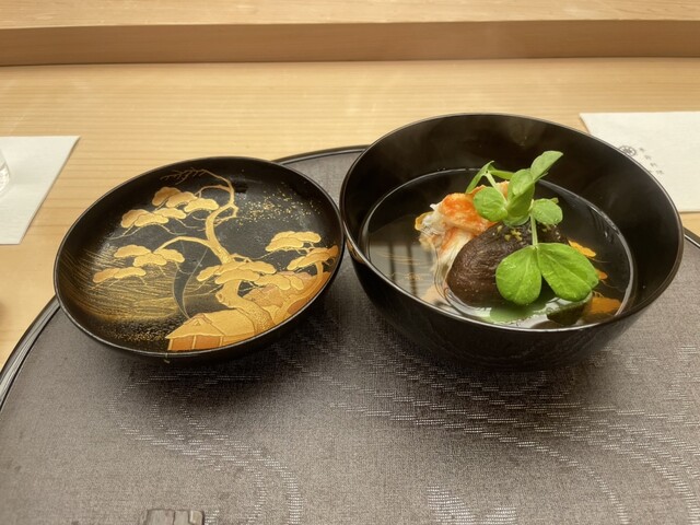 →大正時代の輪島塗のお椀の一番出汁に浮かんだずわい蟹のしんじょうはそりゃ美味いよね