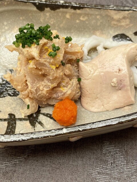 生の肝はそのまま、湯引きも自家製ポン酢に泳がせていただきました