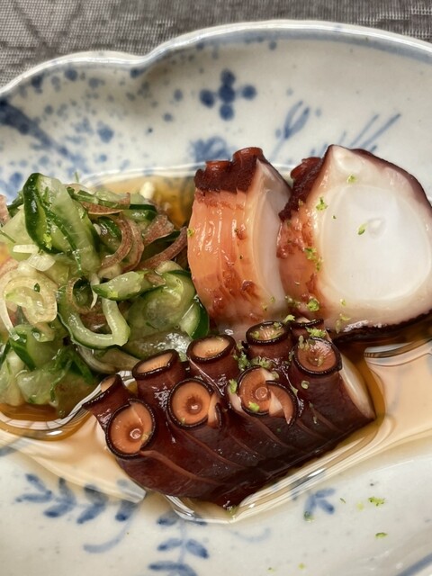 →中はレアに仕上げてあり、独特の歯応えと噛めは噛むほど出汁が出てくる蛸は特別