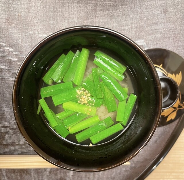 韮の味噌汁は香り良く繊細な部分もあり、香の物(柚子大根、パプリカ、胡瓜、葉山葵)との相性も抜群です