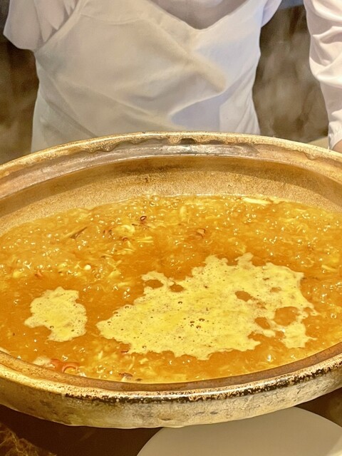 本日使った魚のあらや貝の切れ端と島原産ひのひかりを一つの鍋でおじやに