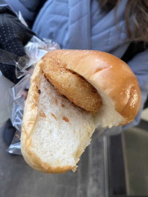 ☑️メンチパン¥350めっちゃ暑い❗️美味❗️
