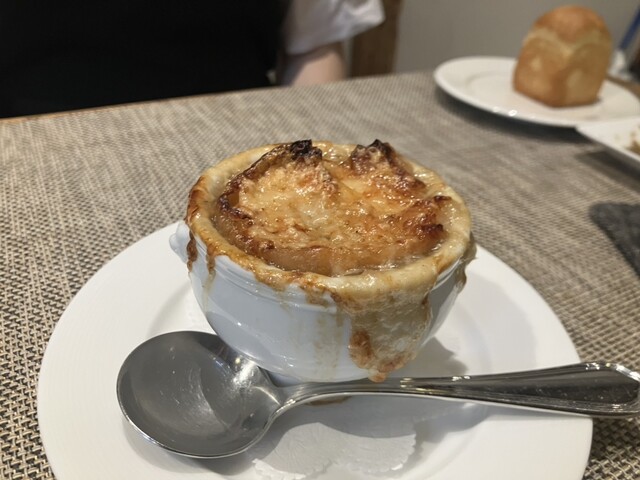 私はスモークサーモンと牛頰肉の赤ワイン煮とタルトタタン、妻はスモークサーモンと赤ハタののポワレバルサミコソースとタルトタタン、娘はスモークサーモンと牛頰肉の赤ワイン煮とフォンダンショコラをオーダー。追加でオニグラも頼んじゃいましたグリュエールチーズの香りが最高です。先付はセロリのポタージュ。苦味とコクが溜まりません。スモークサーモンはこのお店の定番で世界一美味いと勝手に思ってます。付け合せのビーツとフレッシュマッシュルームも最高です。メインの牛頰肉はホロホロで少し濃いめのソースにパンを浸して食べると格別です。付け合わせのマッシュポテトと人参も甘くて、香りも良く、素敵な時間を香り高いコーヒーとタルトタタンで締めくくりました。