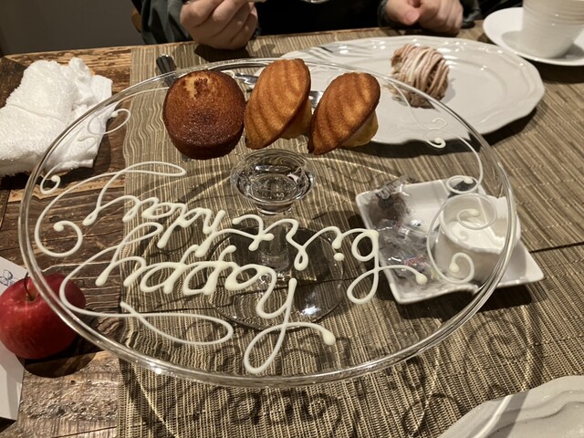 最後はお誕生日プレートでフィナンシェと挽きたてのコーヒーを頂き、お腹がパンパンとなりました。