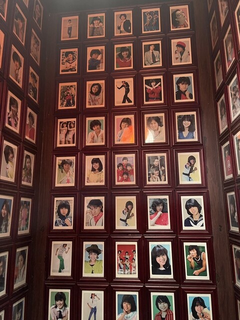 代々木駅西口改札でてすぐ。2階に上がる階段の両脇には昭和のアイドル雑誌、明星の表紙がズラーリ。店内はズラーッと長いカウンターとボックス席2つ。壁一面昭和のレコードジャケット。