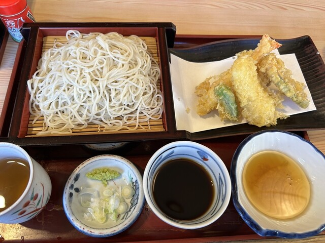 天せいろの天ぷらはエビ、白身魚、さつまいも、かぼちゃ、れんこん。