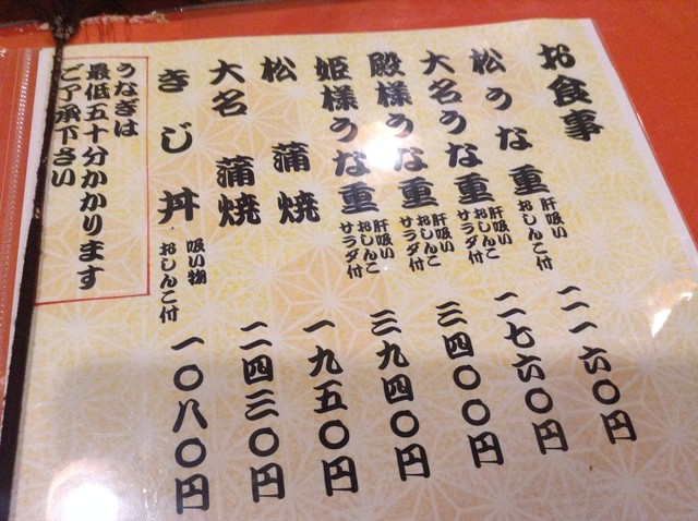 メニューは、姫、殿、大名 といった名前です。メニューにはありませんがもちろん白焼きも焼いてくれます。