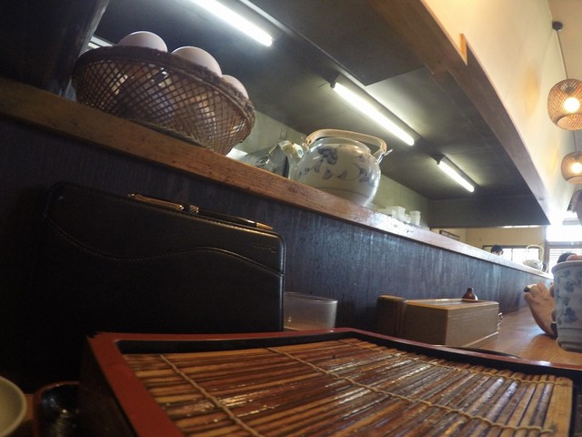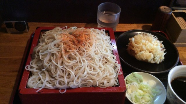 平日火曜日9:30に入店。満席で待っているお客さんも5人ほどの朝から混んでる人気店です。 15分ほどで席に着けましたが、後から来て待っているお客が続く中、「もうお蕎麦無くなりました」と10:00前で終了。ぎりぎりセーフでした。 注文したのは、冷たい鴨そばの大盛り。(500円+大盛り150円) L字カウンター席10席ほどで、ご主人と奥様の二人で切り盛りしている。 3~4人分ずつつ茹でて、提供される。 注文が入ってから作るかき揚げも絶品だが、今日は鴨蕎麦に。 温かいおつゆと冷たいお蕎麦で、おつゆには、鴨肉が3枚と鴨肉のつくねが2個入っています。山葵もよし、七味もよしのお好みで。途中でちゃんとそば湯も出てきます。 お蕎麦は細目ですが、すごく長いお蕎麦で、つけ汁に入れる際は手を高く上げないといけないほどです。大盛りでなくても十分量があります。
