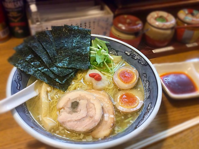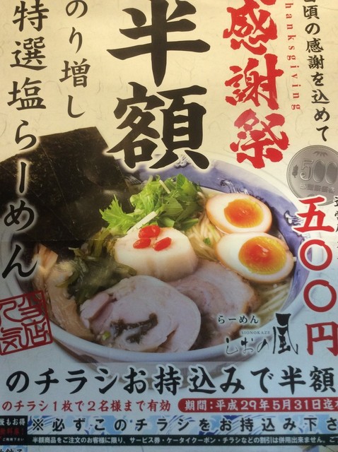 ここに来ると色々メニューもありますが、やっぱりスタンダードな特選塩ラーメンですね。