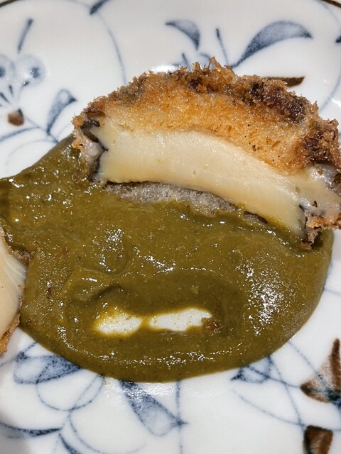甘鯛の衣も残しつつ絶妙に揚げられておりそこにトロミがあるソースに松茸がたっぷり入って