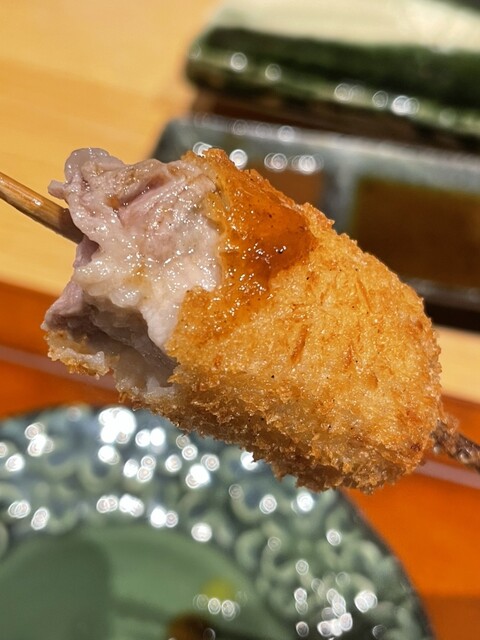 極薄パン粉で植物性100%の油で揚げた串揚げは表面がサクッとして中の素材の美味しさを引き出した串揚げに✨
