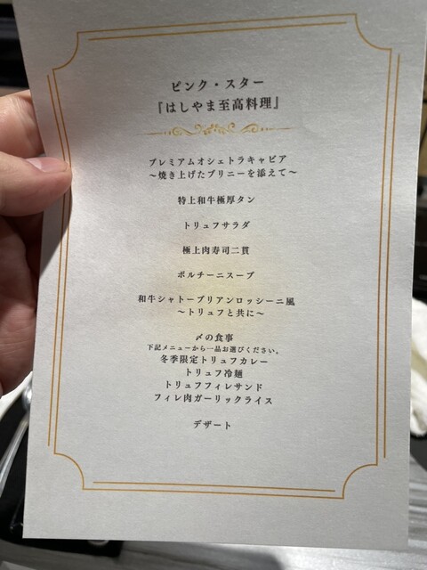 〆は数種類から選べて前回はトリュフ冷麺にしたのですが、今回はトリュフヒレサンドを