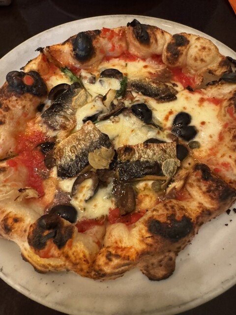 本番のピザは前回美味しかったクアトロフォルマッジョとアンチョビ入りのトマトベースピザにしました。いざ実食すると、やはりこの生地のパリパリ感と香ばしさと厚みが絶妙で、何度食べても美味しい。本当に幸せになりました。