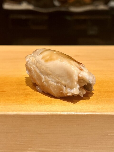 蒸し鮑に合わせる舎利には鮑の肝ソースに烏賊も!