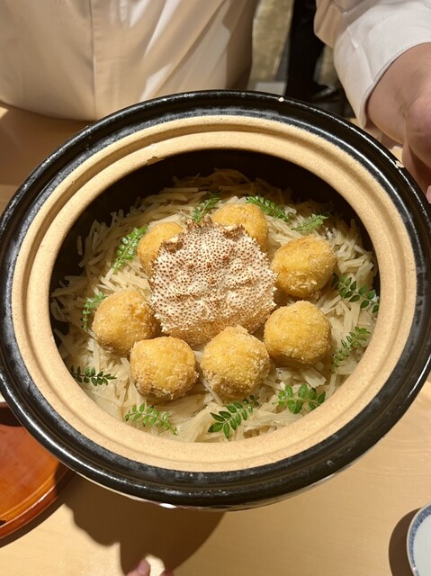毛蟹の真薯コロッケと新生姜のご飯 まずはそのままで楽しみます