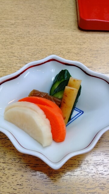 大きめの肝の入ったお吸い物と漬物もご飯を進めさせます。