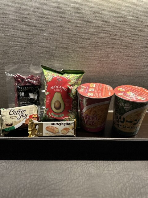 お部屋にも宿泊費に含まれてる無料のドリンクやカップ麺等もあり。(写真あり)
