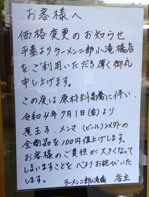 今年の7月からラーメンは\100値上げしてるんですね